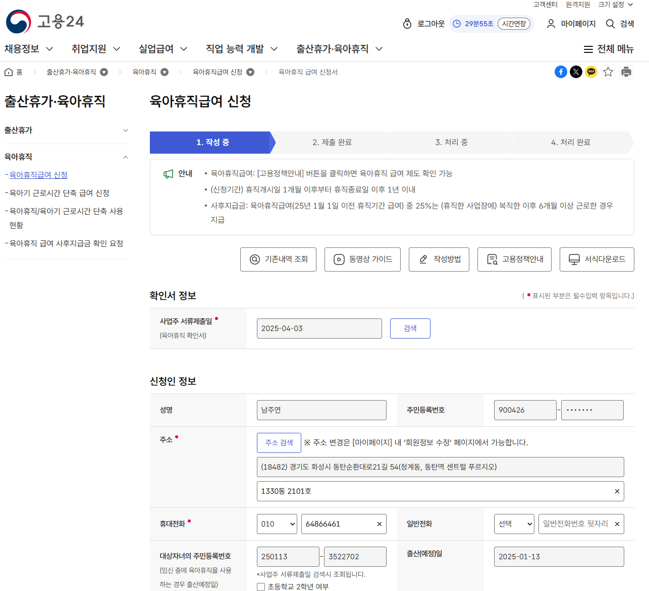 육아휴직 급여와 부모급여 신청을 온라인으로 하는 모습